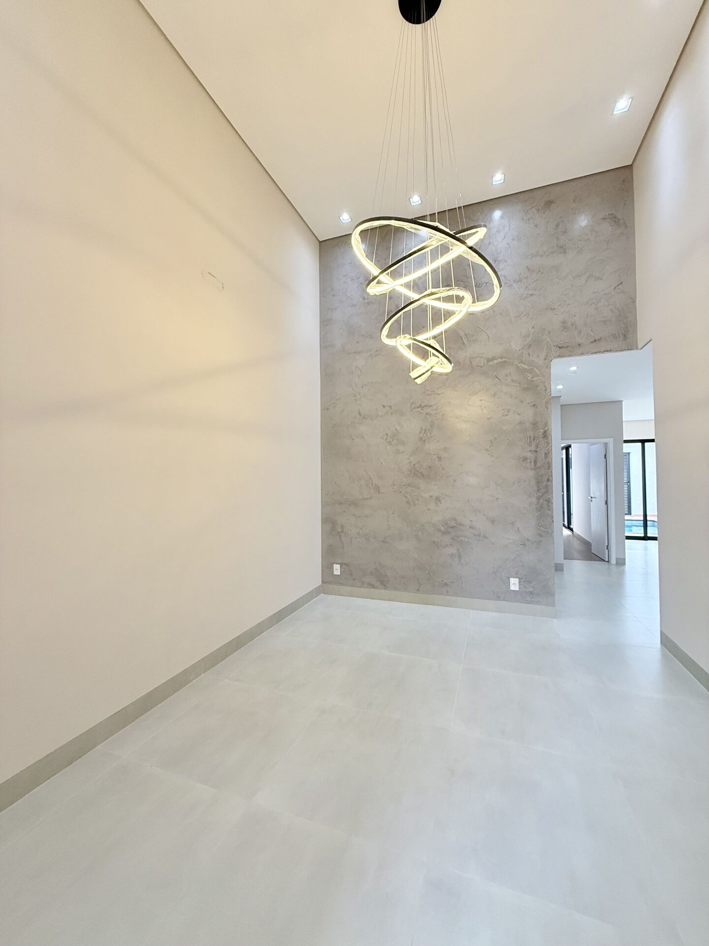 - Sala ampla com pé direito alto, proporcionando elegância e luminosidade