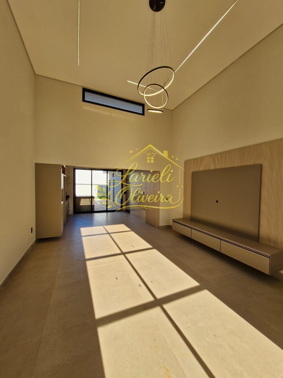 • Sala ampla integrada à cozinha, com pé-direito de 4,5 metros