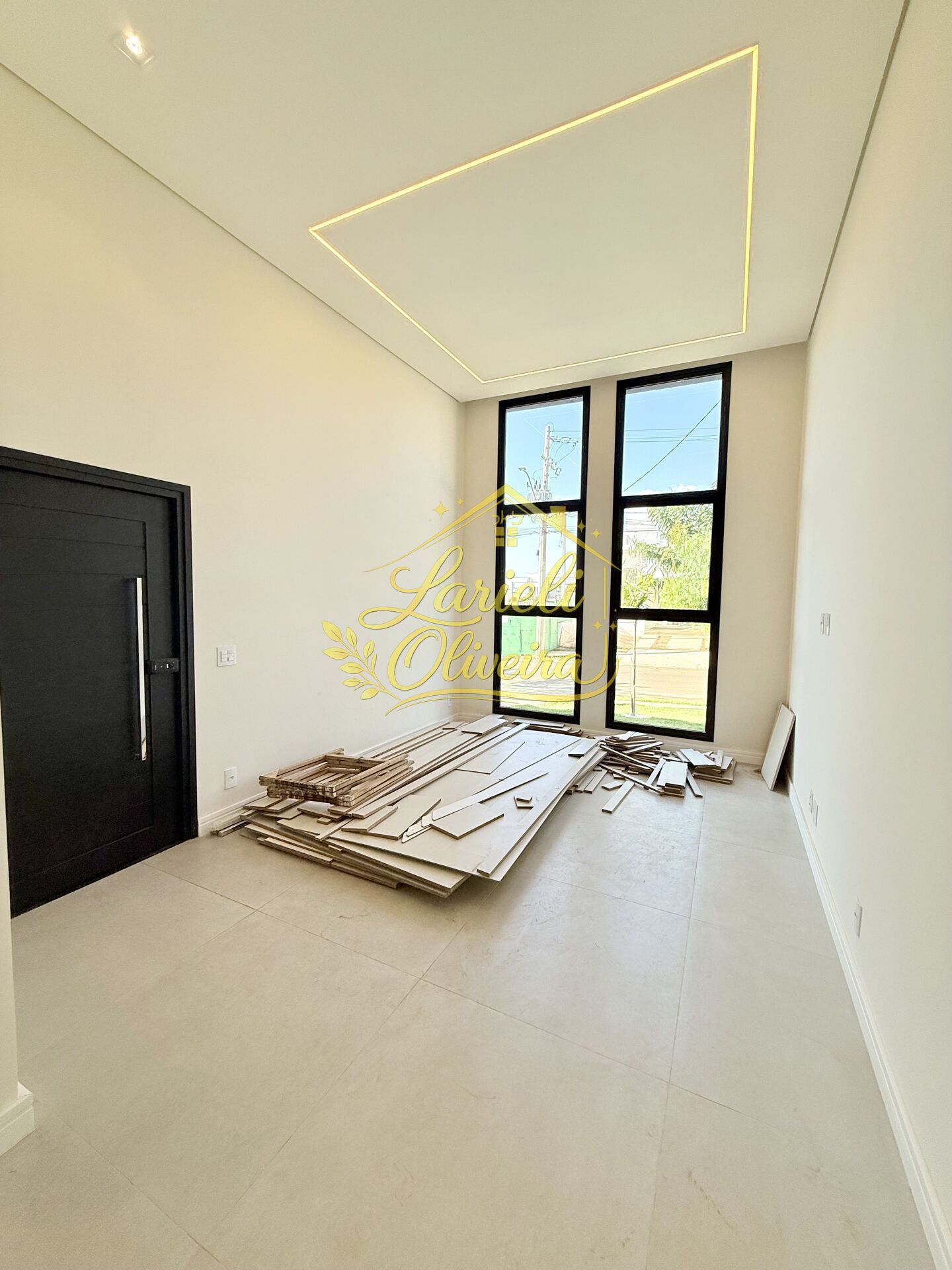 - Sala para dois ambientes com pé direito alto, garantindo sofisticação e ótima iluminação natural