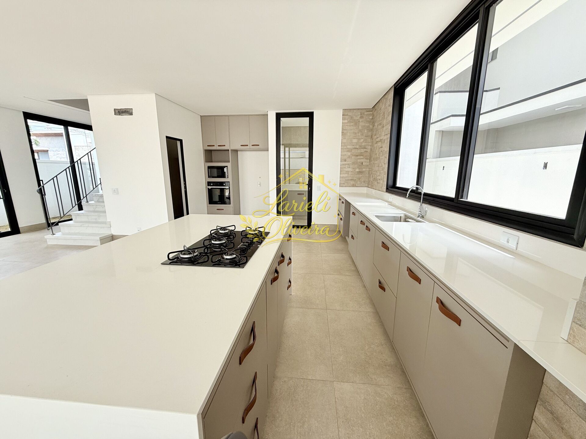 - Eletrodomésticos no espaço gourmet: fogão cooktop, micro-ondas e forno elétrico